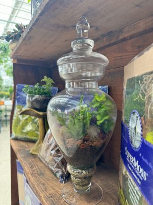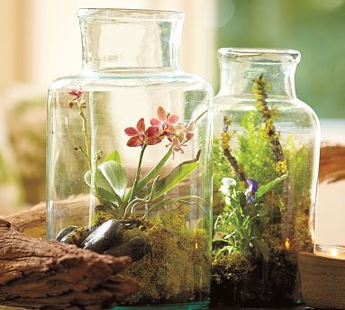 Planting a terrarium is a fun and creative project for all ages. It’s great for those of us that have a special talent for cultivating and also for those of us that don’t have the so called “green thumb”. A terrarium is a clear sided container that is self contained and can either be open or enclosed. It is important that the sides (and top) be clear so that the light is not obstructed. Most people can find something in their home to use for a terrarium.